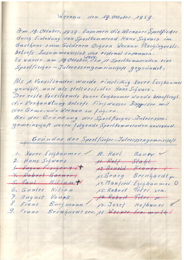 26.01.1963 - Bei der Jahreshauptversammlung am 26.01.1963 im Gasthaus zum Löwen wurde aus der Interessengemeinschaft ein Verein - Sportfischerverein Wernau am Neckar e.V.